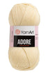 Mixture of 100% Anti Pilling Acrylic Ball Weight: 100 gr Label length 280 m Needle numbers 4 mm Hook Numbers 4 mm Stitch Information 24 rows 20 stitches for 10x10 cm size You can wash the products you knit with Mevsim Yarnart Adore without exceeding 30¡. It is recommended to lay it out to dry. The color of the product appearing on the screen and the actual product may differ in tone.