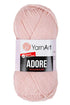 Mixture of 100% Anti Pilling Acrylic Ball Weight: 100 gr Label length 280 m Needle numbers 4 mm Hook Numbers 4 mm Stitch Information 24 rows 20 stitches for 10x10 cm size You can wash the products you knit with Mevsim Yarnart Adore without exceeding 30¡. It is recommended to lay it out to dry. The color of the product appearing on the screen and the actual product may differ in tone.