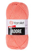 Mixture of 100% Anti Pilling Acrylic Ball Weight: 100 gr Label length 280 m Needle numbers 4 mm Hook Numbers 4 mm Stitch Information 24 rows 20 stitches for 10x10 cm size You can wash the products you knit with Mevsim Yarnart Adore without exceeding 30¡. It is recommended to lay it out to dry. The color of the product appearing on the screen and the actual product may differ in tone.