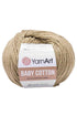 Mix 50% Acrylic - 50% Cotton Ball Weight: 50 g Label length 165 m Needle numbers 3 mm Hook Numbers 3 mm Crochet Stitch Information 32 rows of 22 stitches for 10x10 cm size Needle Stitch Information 30 rows 28 stitches for 10x10 cm size 30 rows 28 stitches Season: Autumn, You can wash the products you knit with Yarnart Baby Cotton in Spring and Summer without exceeding 30¡. It is recommended to lay it out to dry. The color of the product appearing on the screen and the actual product may differ in tone.